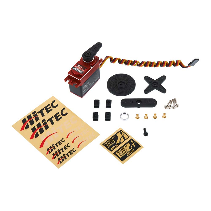 The D951TW D-Series Ultra Torque Titanium Gear Digital Servo sets new standards for advanced, programmable technology. Powered by Hitec's 32-bit MCU (Microcontroller Unit) and 12-bit ADC (Analog to Digital Converter) industrial science, these powerhouses dominate the servo arena. Their potent combination of wide voltage capabilities, high resolution, rapid response, and patented Smart Sense technology brings maximum performance to all radio control applications.