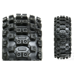This is a pair of Pre-Mounted Badlands MX Tires for 1:8 Buggy. Pro-Line is taking the 1:8 Buggy tire game to the next level with the Biggest and Baddest tire ever conceived: the Pre-Mounted Badlands MX!