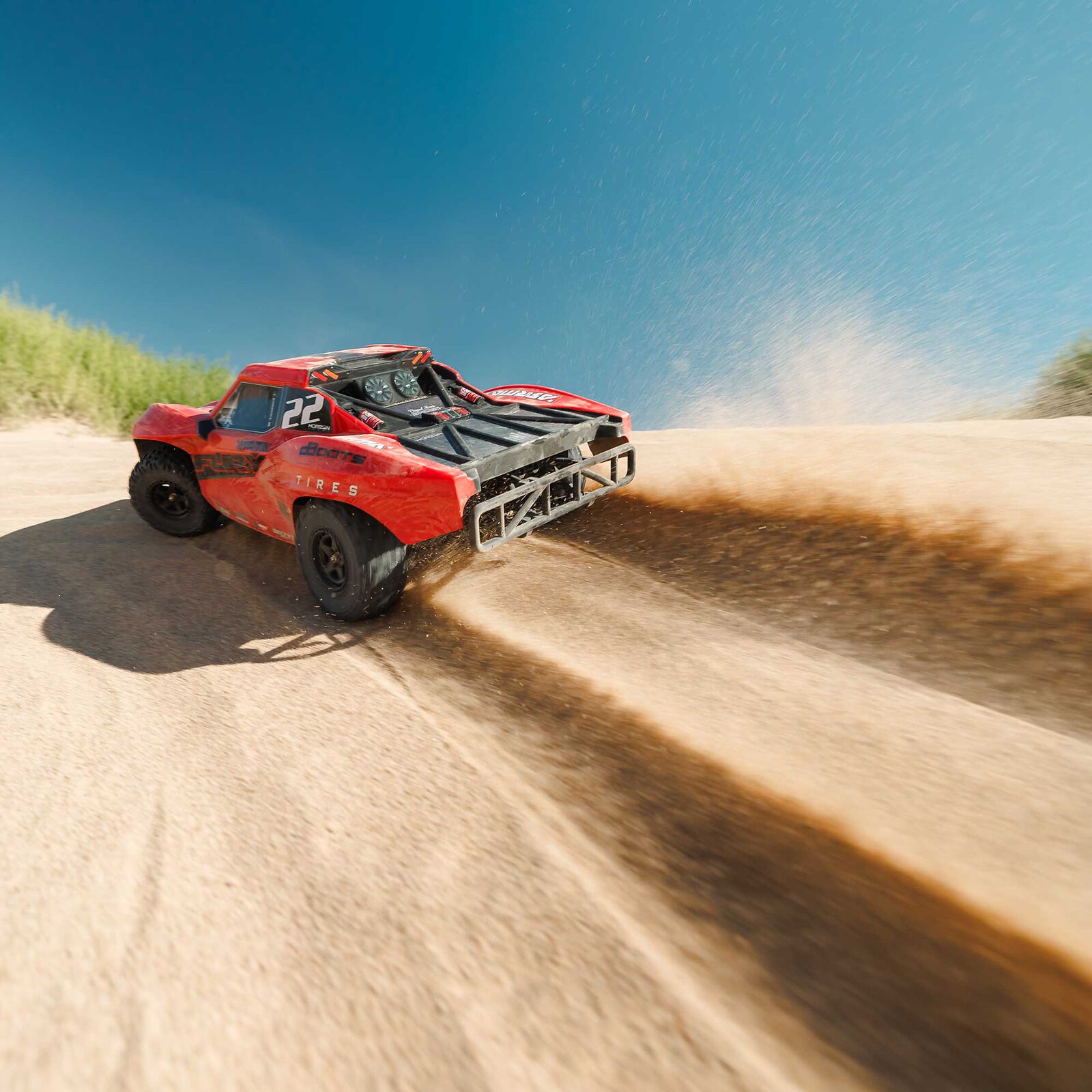 Everyone can get in on short course bashing fun with the 1/10 scale FURY MEGA 550 2WD. Like all ARRMA vehicles, the FURY is designed fast and designed tough — ready to give both new and experienced RC drivers amped-up performance right out of the box. Unlike any other ARRMA 2WD, the FURY has a closed-wheel body design that screams “short course”. You can bash side-by-side with friends, without getting tangled in each other’s tires.