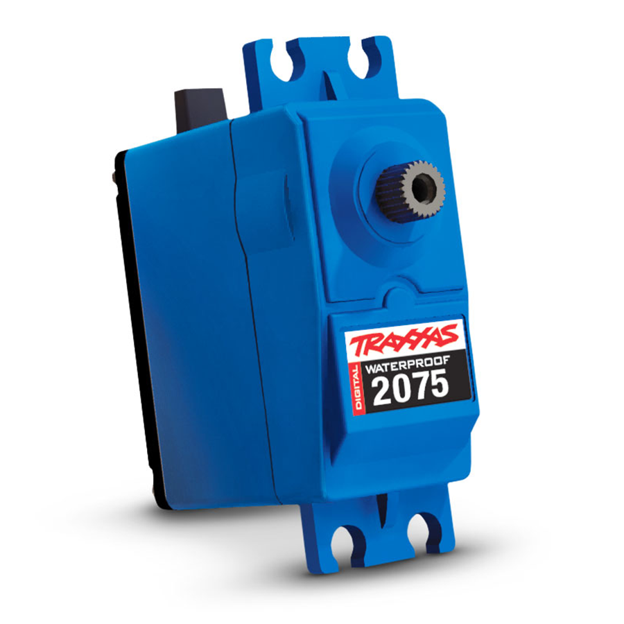 A race truck needs a powerful steering servo for responsive performance. The waterproof steering servo (2075) uses O-ring seals to keep the fun going when things get wet. The Traxxas digital high-torque servo provides precise steering authority and speed for wheel-to-wheel racing in the back yard or on the track.