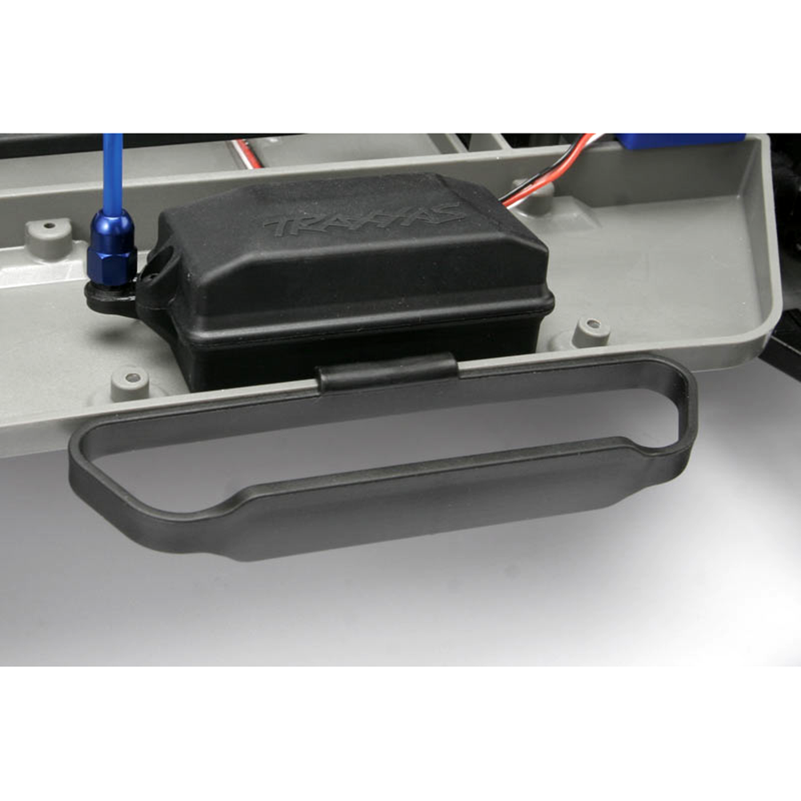 Slash VXL's receiver is fully enclosed for protection from the elements. The antenna and servo wires route neatly through a special watertight seal, and a custom blue O-ring seals the receiver box to protect the receiver from water. The receiver can be removed for service and aftermarket receivers can be installed without losing the sealing properties of the patented receiver box.
