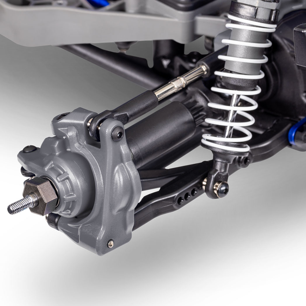 - Extreme Heavy Duty Upgrade Kit — Along with added power, Stampede 4X4 VXL also gets a massive boost in strength with its factory-installed Extreme Heavy Duty Upgrade Kit. The kit replaces key drivetrain and suspension components with beefed-up parts made for ultimate strength and durability. From the HD suspension arms to the steel wheel hubs, this is the strongest driveline ever offered in a Stampede.