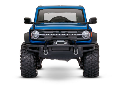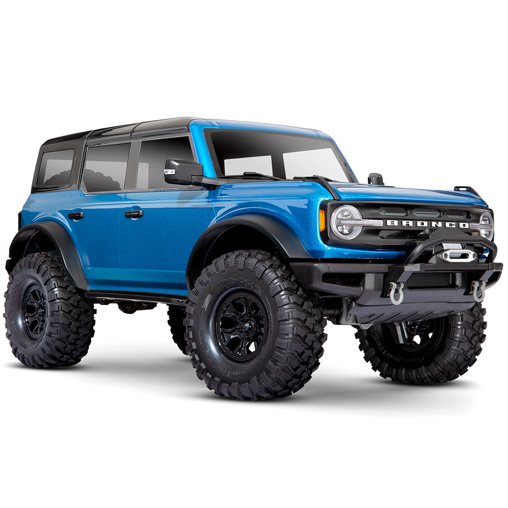 Officially Licensed Replica Body The 2021 Bronco brings replica realism to new heights. Rugged fender flares accentuate the Bronco's muscular styling. The grille is deeply molded and equipped unique LED-ready lenses. The heavy-duty, winch-ready bumper is outfitted with a metallic fairlead. Authentic details abound, all the way to the functional spare tire.