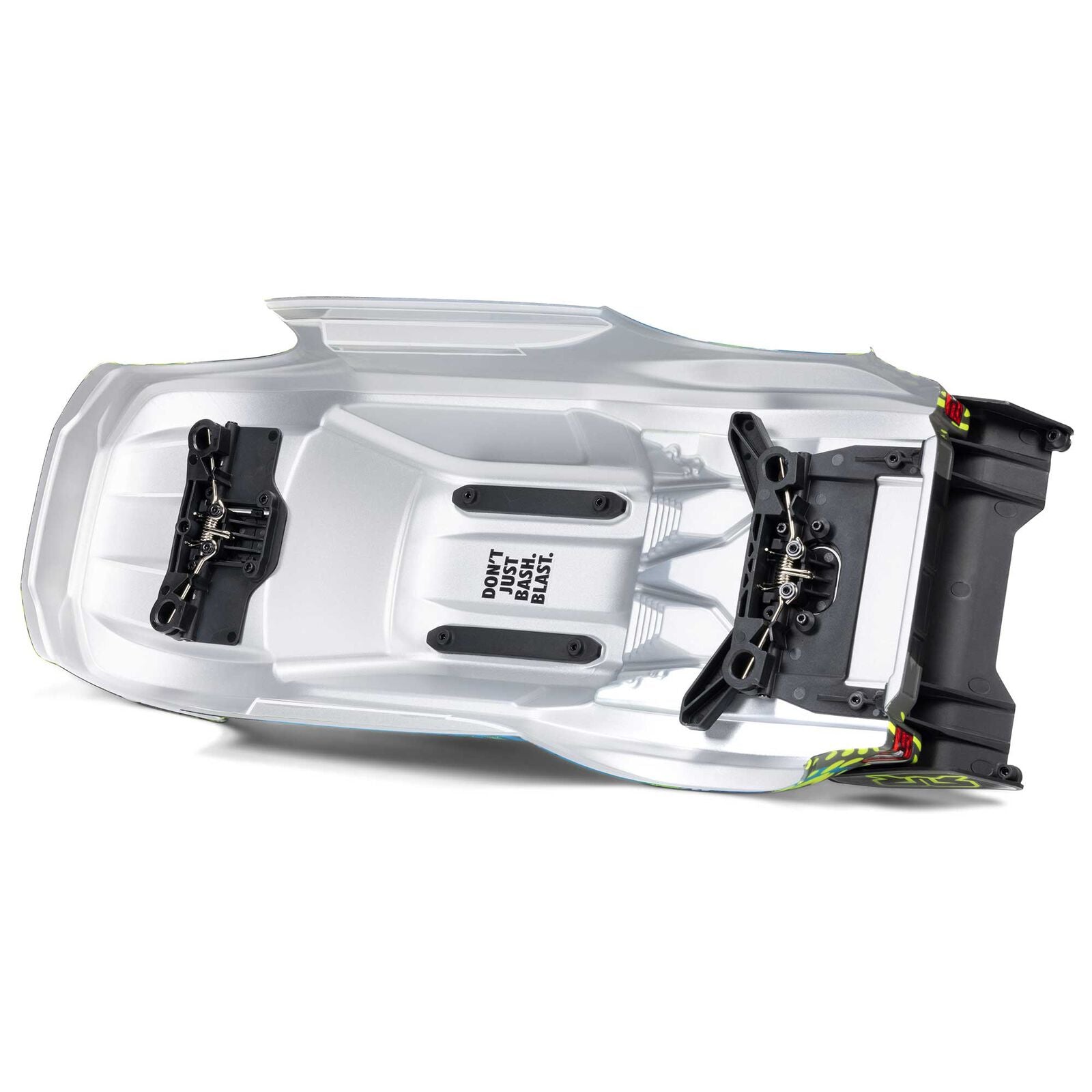 The stadium truck’s composite chassis features extended height dirt defenders, oil-filled shocks with silicone O-rings, metal geared differentials, and more for impressive durability. Its high-quality, factory-installed Spektrum electronics are waterproof for worry-free bashing in any conditions. High-traction dBoots tires on tough multi-spoke wheels add to the unstoppable performance. Topping it all off is a sleek stadium truck body with tough, injection-molded wing and protective roof skids.