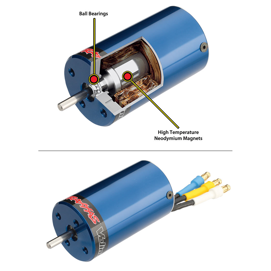 Built specifically for Traxxas 1/16 scale models, the VXL-3m™ speed control and Velineon® 380 motor represent the latest in brushless technology. Fully LiPo compatible with low-voltage detection for 2s and 3s packs and rated for 6-12 NiMH cells, this potent, powerful combo gives E-Revo VXL precise throttle control and blistering top speed. The Velineon 380 is built with high-speed ball bearings, sintered rotor, neodymium magnets, and gold plated 3.5 mm connectors. It all adds up to 50,000 rpm of pure power and speed!