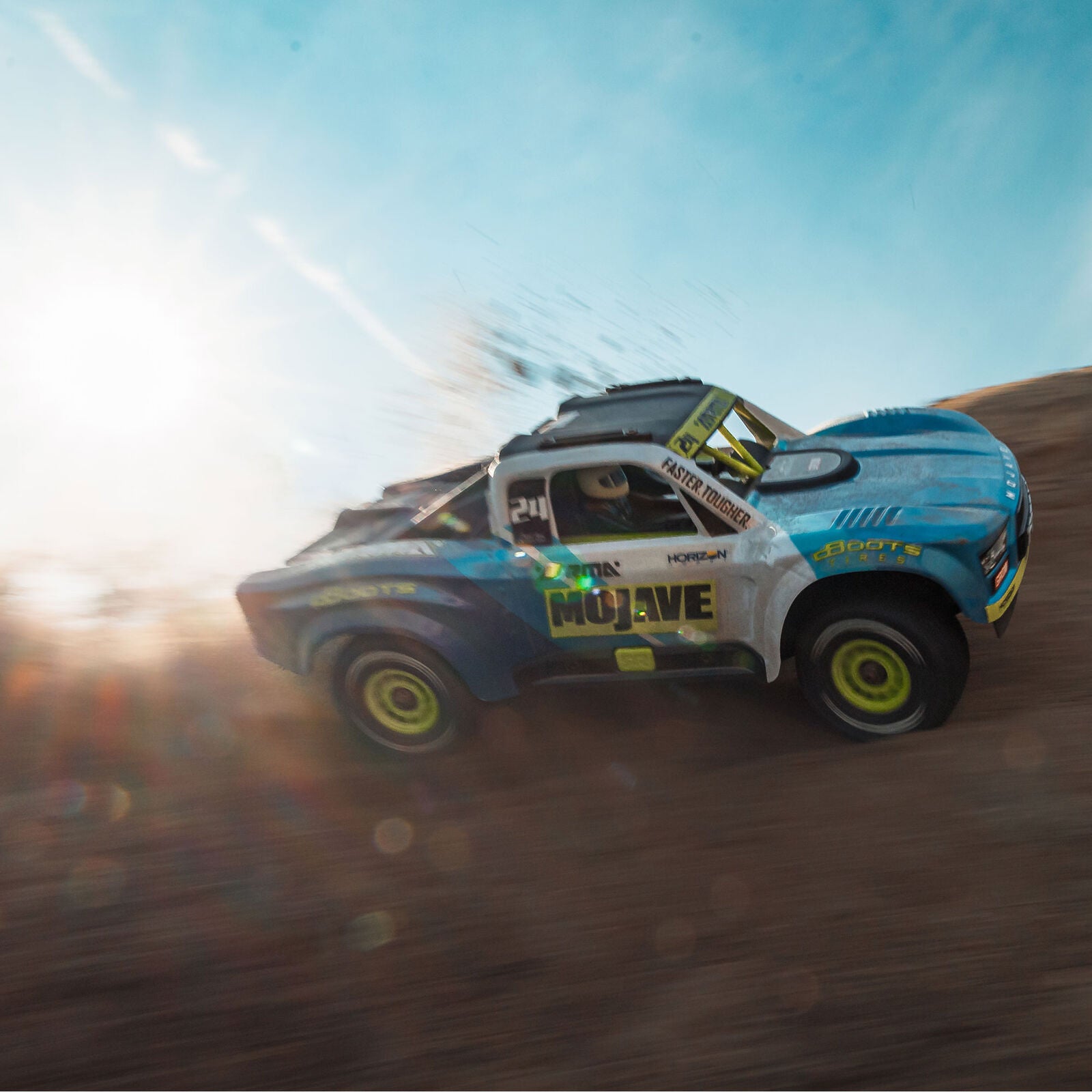 Indoors and outdoors, the MOJAVE GROM goes places that are off-limits to larger RC desert trucks. And it’s still engineered to the same high standards as other ARRMA vehicles. No compromises were made when reducing the size. With its smooth handling and tackle-anything toughness, you can be as aggressive as you like when you send the MOJAVE GROM through the corners and over the jumps.