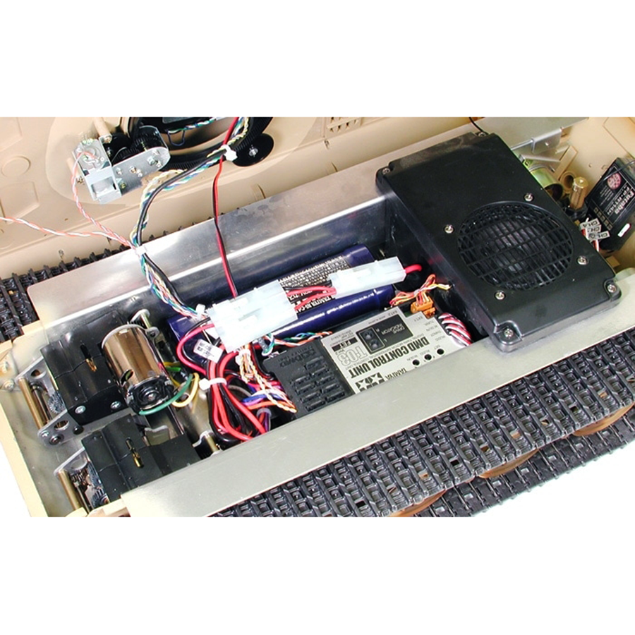 The only King Tiger kept in working condition is displayed in the Musee des Blindes in Saumur, France. In order to record the actual Maybach engine sound, Tamiya's staff crossed half of the planet to come to Saumur. Not only all stages of engine sound from idling through full throttle, but also all the metallic clanking of the tank tracks as well as the crank starting sound and the electric motor starting sound have been thoroughly recorded. Hearing the 700hp Maybach V12 engine sound when running your King Tiger will provide you with an even more striking feel of realism.