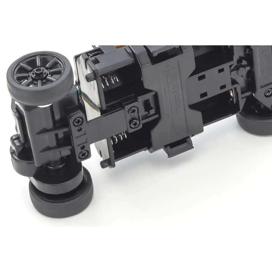 Equipped as standard with a 130 class motor that boasts sufficient speed and power to run in indoor spaces. The kingpin spring type front suspension supports the agile running of the First Minute, which copes with small irregularities on the road surface. A leaf-type rear suspension that uses a resin T-bar inherited from the MINI-Z racer. Its "bending" characteristic provides stable running.