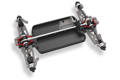 The Teton™ packs big all-weather adventure into a powerful 4-wheel drive off-roader that's quick and versatile for radio-controlled fun anytime, anywhere. This tough rig checks in at 1/18 scale, yet its purposeful design easily tackles rugged back-road terrain. The steep approach angle lets the grippy tires attack large rocks and tall curbs with aggressive climbing action. Smooth, long-travel oil-filled shocks keep the suspension motion in check over rocky terrain, and smooths out the landings when coming off of big jumps. Strength on the trail is assured with proven shaft drive, metal ring and pinions in the differentials, and smooth, long wearing ball bearings. Roosting dirt and slinging gravel are just part of the fun as the fully proportional electronic speed control and powerful motor deliver punchy acceleration and exciting speed.