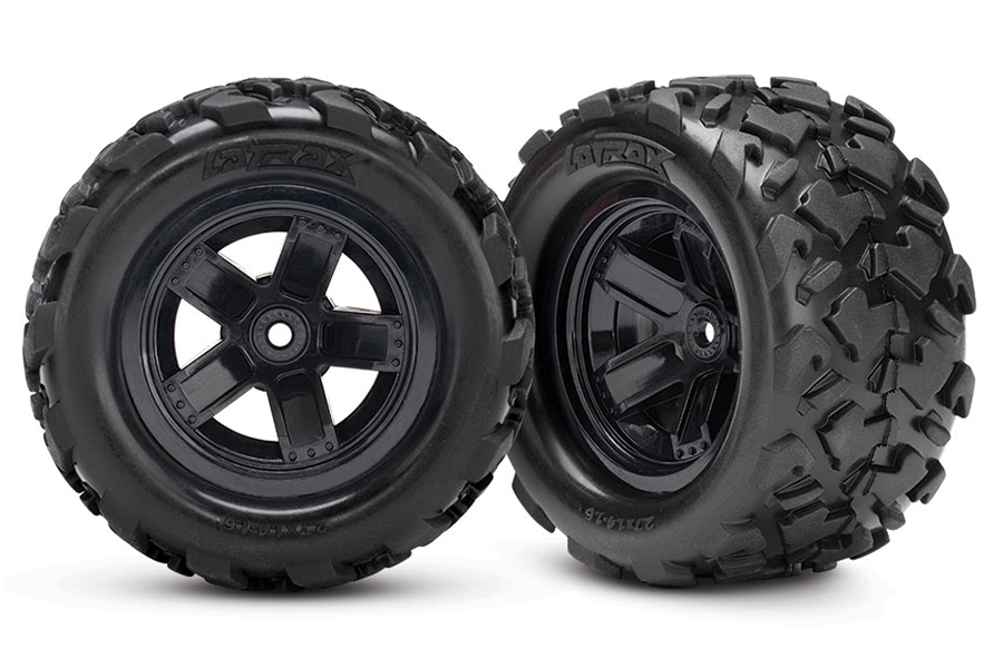 - Teton off-road tires mounted on black, 5-spoke wheels