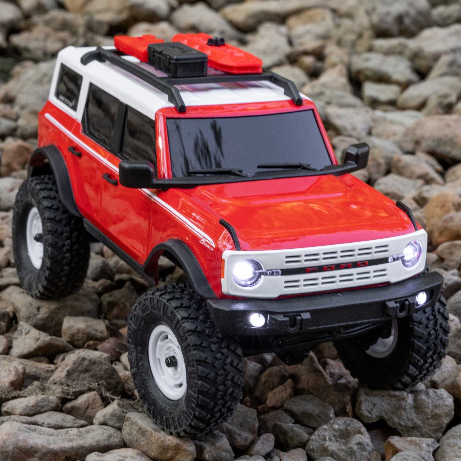 With its proven performance on indoor and outdoor trails, the Axial® 1/24 scale SCX24™ is the ideal platform for bringing the Ford Bronco to Ford fans and RC crawling enthusiasts of all ages. Everyone will admire the scale realism of its officially licensed, highly detailed hard body -complete with molded door handles, mirrors, roof rails, and a mounted spare tire.