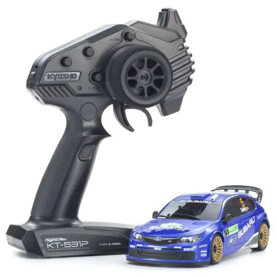 The Impreza WRC 2008 made its debut in round 7 of the World Rally Championship (WRC) in 2008, which was the final year for Subaru works teams to compete. Subaru’s six-star logo on the signature WR blue was simple yet visually impactful. Includes stylish design of Syncro KT-531P transmitter. Features steering / throttle trim as well as dual rate adjustment of steering angle and control the flashing speed of optional LEDs. In addition, the transmitter has a Training Mode feature which limits speed of the car for easy learning (default setting at the time of shipment is Training Mode).