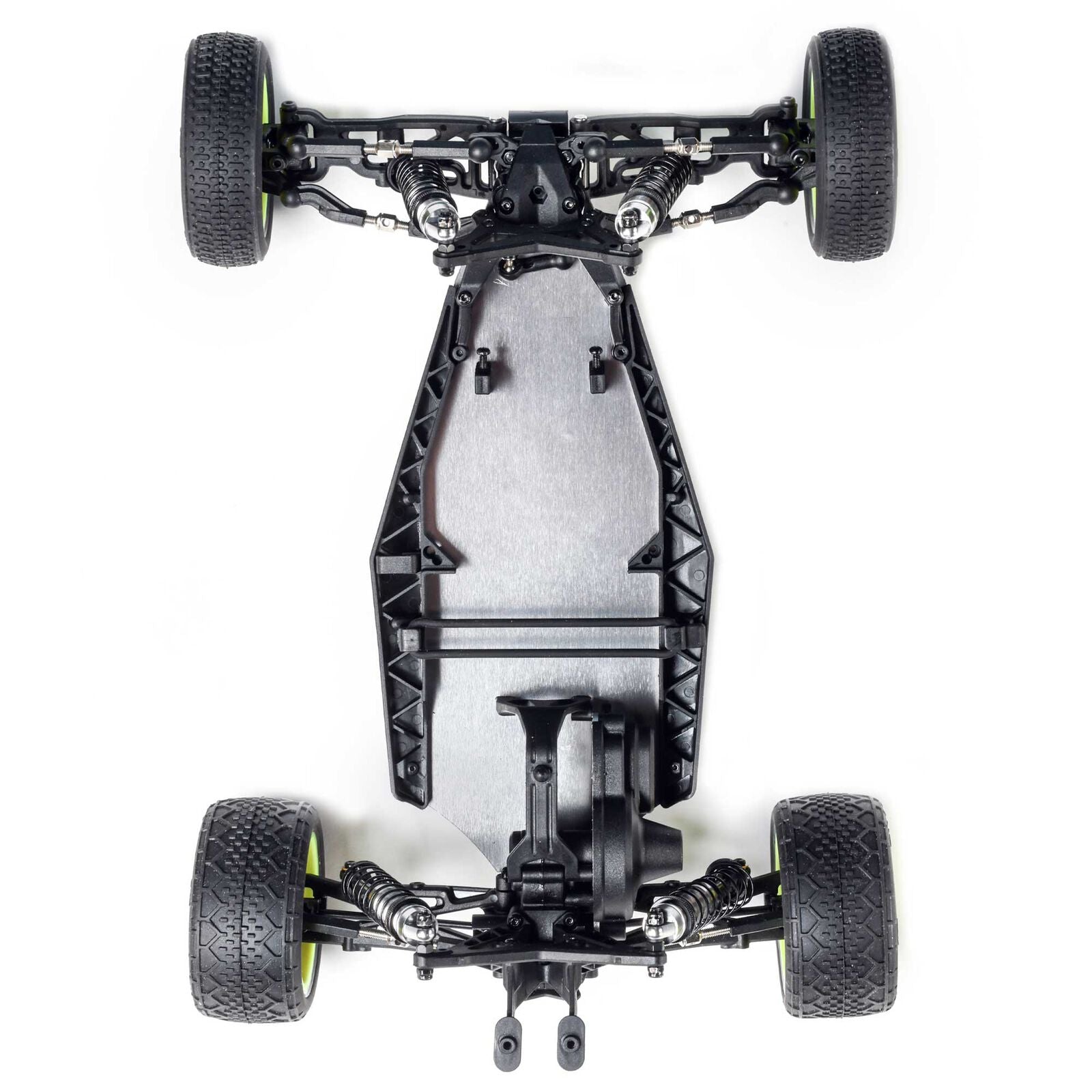 The 1/16th scale is stable on the track generating quicker speeds and improved handling. With suspension geometry from the TLR® 22 platform and the inclusion of aluminum chassis, shocks, servo arm, bellcranks, and front pivot block, you get more from a Mini than ever before. Everything about this buggy is designed to give racers what they've asked for and deliver the kind of impressive experience drivers expect from Losi.
