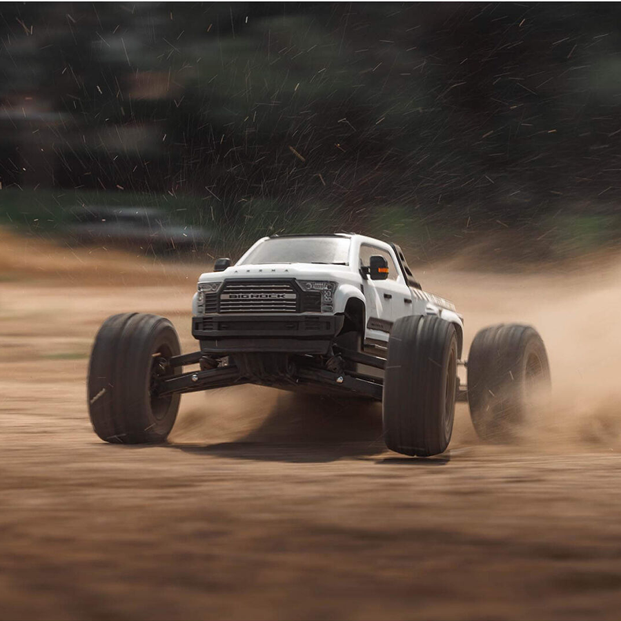 Assembled, finished, and complete with high-quality Spektrum SLT3™ radio system, the ARRMA BIG ROCK 6S BLX RTR requires only your choice of the recommended LiPo batteries and charger before delivering big brushless performance with incomparable scale style.