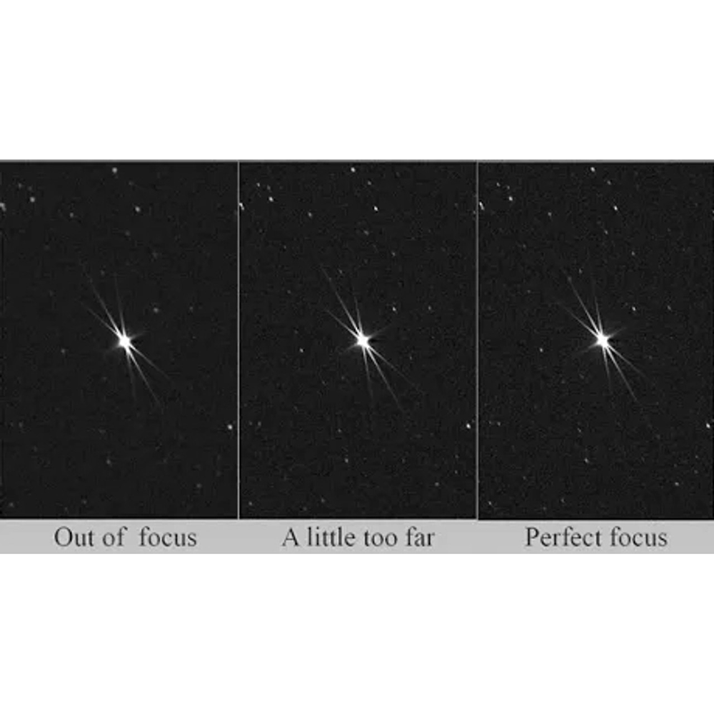 Simply place the mask in front of the main optic of your telescope and take a picture. Look at the diffraction spike pattern and continue until the spikes are even. Using a Bahtinov mask is the easiest way to get into focus.
