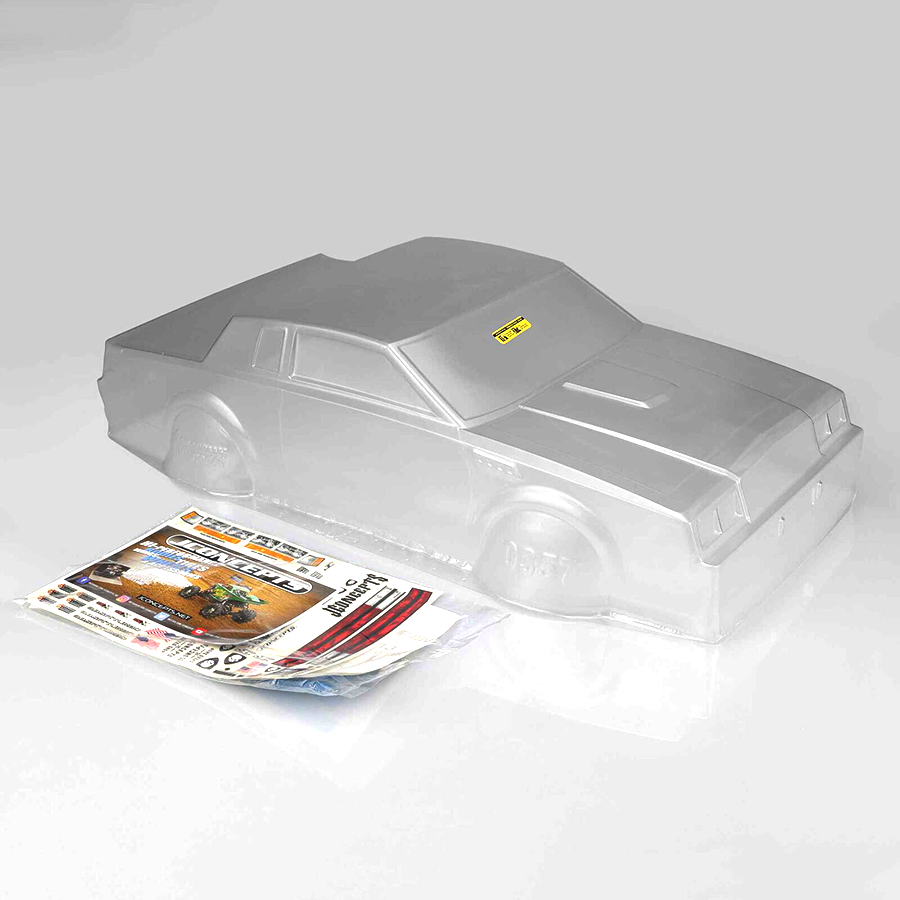 The cab itself is one of the identifiable features of the GNX and its balanced positioning and sharp lines makes competitors retreat in fear. Rear bumper creation was detailed even allowing position for personalized license plate from the included decal sheet. A small built-in rear spoiler keeps things looking original for those sleepy builds and creations. Included in each body set, a 1987 Buick Grand National decal sheet and the paint mask for all windows. As always, each body set is backed with JConcepts customer support and racing heritage.