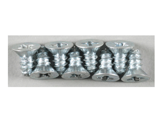 Zinc-plated metal construction. The countersunk head is recessed for a phillips head screwdriver.