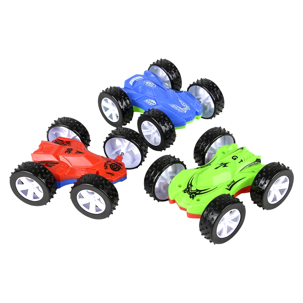 Friction power, no battery required! These race car toys have a powerful 4-wheel inertial drive, push the toy car forward or backward, and then let go, without a battery, it will continue to travel long distances. Hit a wall and it will flip over and come back upside down.
