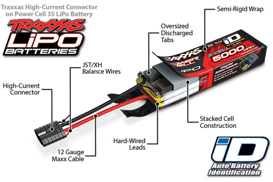 The #2996X 4S Completer Pack delivers ultimate power to your Maxx® for the speed and acceleration you crave. Punch the throttle and the 4-cell 5000mAh iD LiPo battery lights up the tires for blistering 60+mph speeds and long run times.