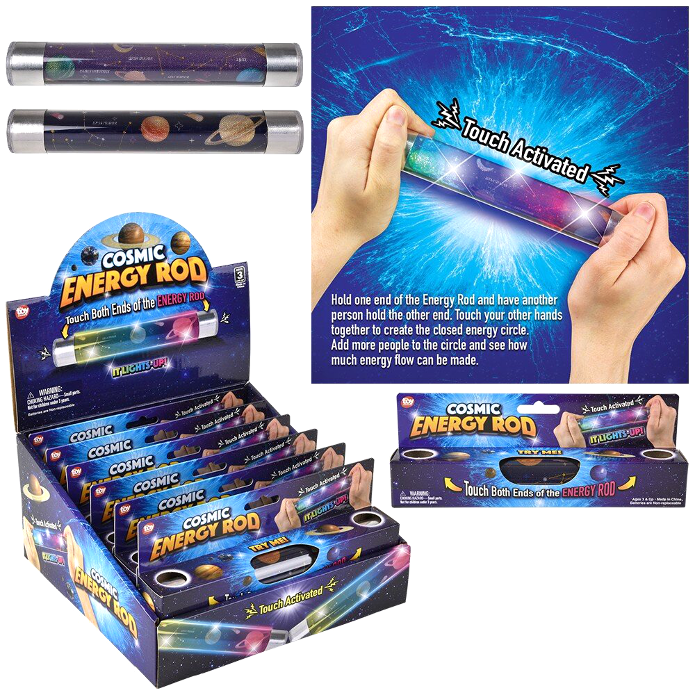 Activate the Cosmic Energy Rod to create a fun, interactive experience! Connect your energy with friends or family to complete the circuit, lighting up the rod and triggering exciting sounds. Perfect for 2 or more players, it’s all about teamwork and connection. Batteries are included but nonreplaceable. Ages 3+