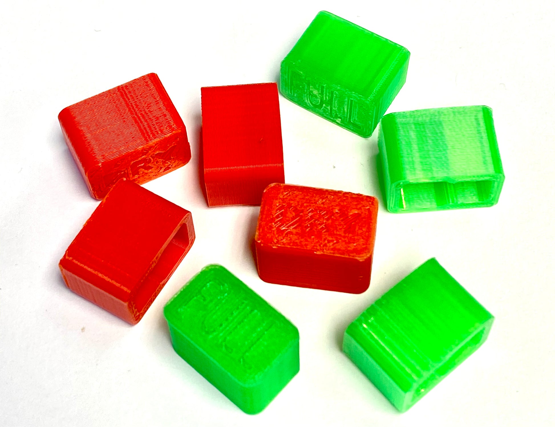This 3D Printed cap is the perfect way to keep track of your packs! They come in a package of four green caps, and four red caps.