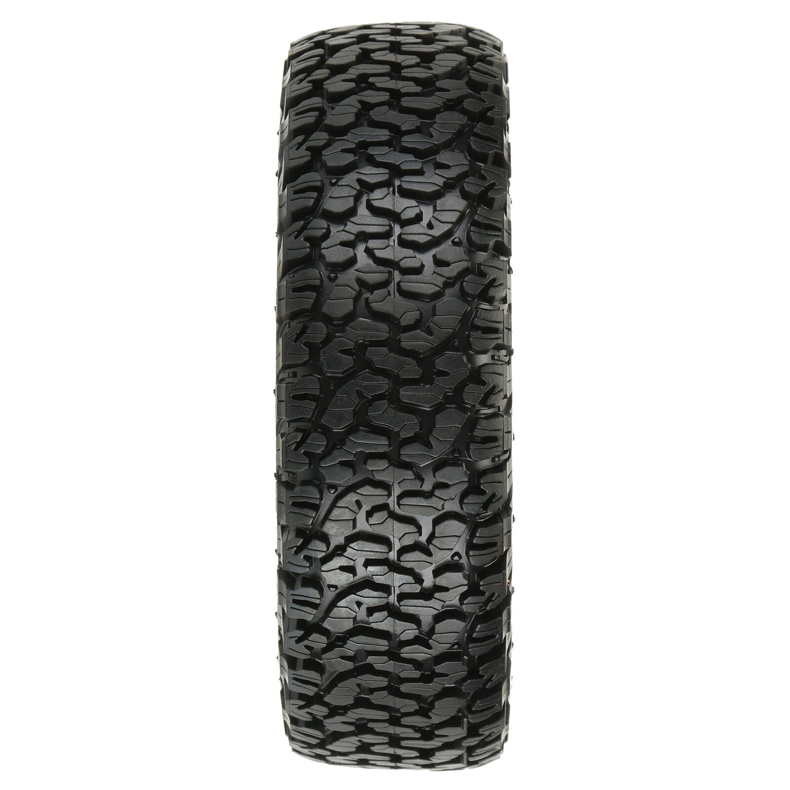 Details from the full-size race All-Terrain tire have been recreated to give your truck the ultimate in scale looks and multi-surface performance. Known for extreme off-road traction and awesome street performance in the full scale world. The BFGoodrich® All-Terrain KO2 tire features an iconic layout of densely packed tread blocks with a large number of tread sipes that will give your rig improved traction on any terrain! Pro-Line engineers decided that the KO2 tire needed to be 4.35" tall x 1.42" wide for the perfect balance of Scale looks and performance! The all-new BFGoodrich® All-Terrain KO2 1.9" tires from Pro-Line are a must have. Get yours today!