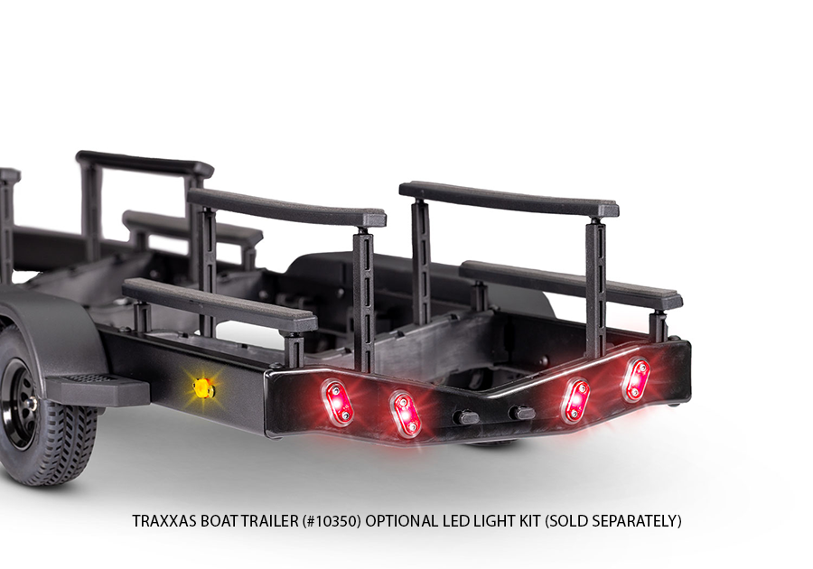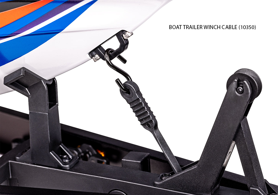 The boat trailer is authentic down to the smallest detail with a folding jack stand, variable-height hitch, and lenses for the optional LED light kit. There’s even a mount to use the Traxxas Pro Scale®Winch to haul your boat out of the water.