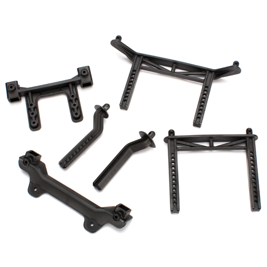 Front and rear adjustable body mounts with body posts. Includes 2.5x18 mm screw pins (4).