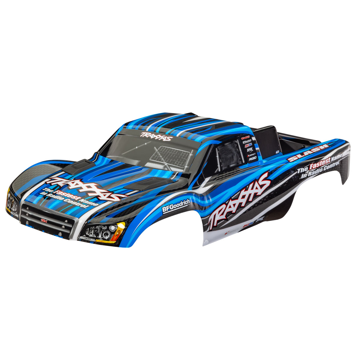 Is it time to replace your Slash® body or upgrade to an all-new look? This clipless polycarbonate body features the hottest ProGraphix® paint with pre-applied decals. There’s no need to trim the body because Traxxas pre-painted bodies come ready to mount right out of the bag. Body comes assembled with front and rear clipless latches.