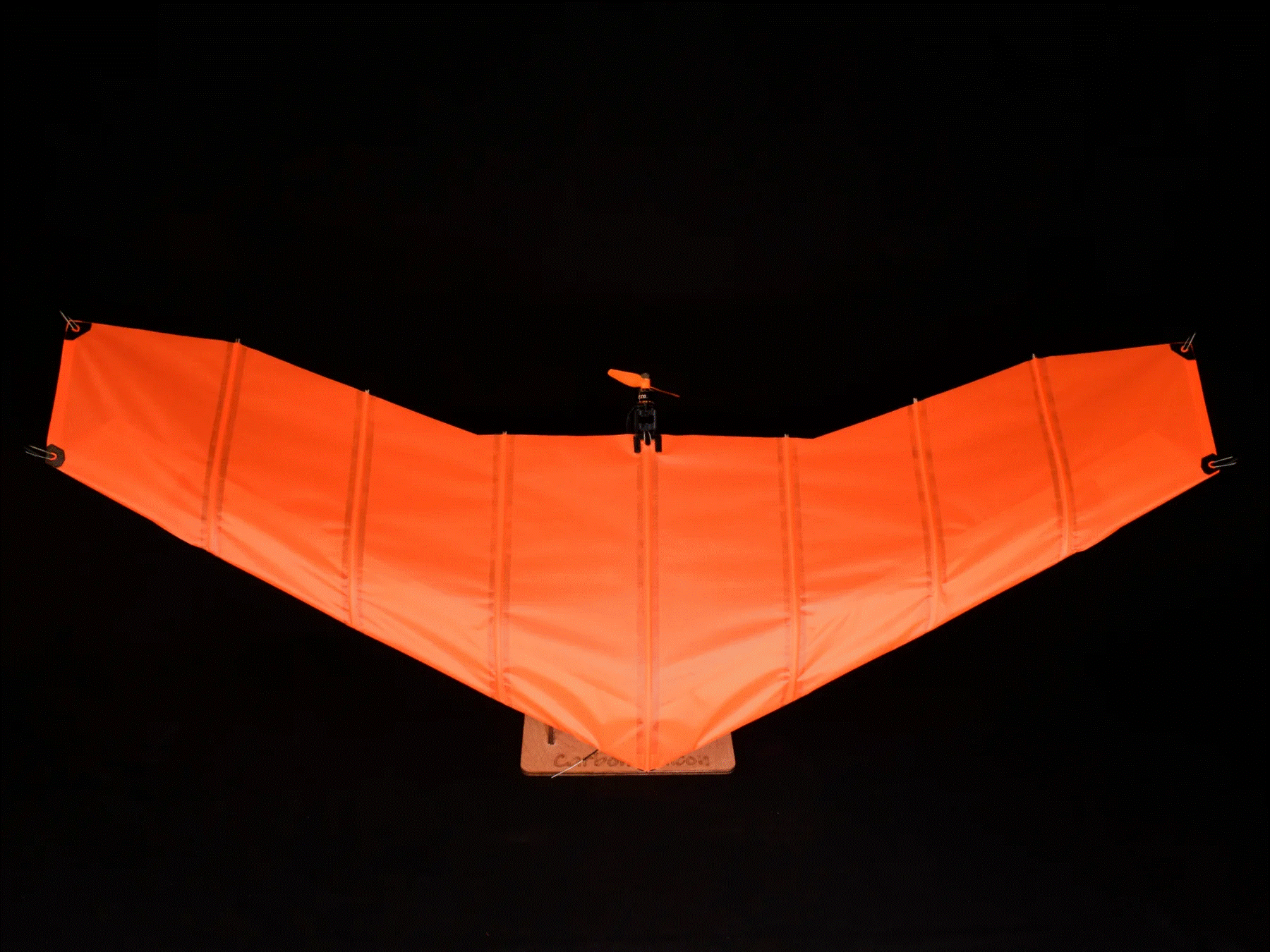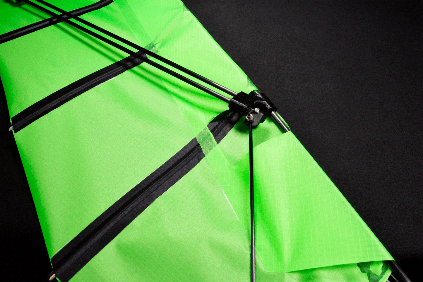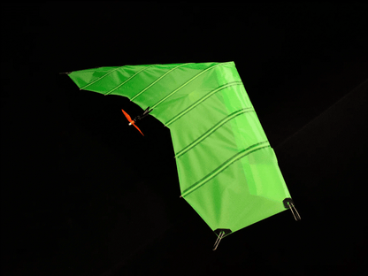 The lightweight and robust frame is mostly made from carbon fiber, that supports a colorful, high strength rip-stop fabric sail. The airfoil shape is provided by specially designed ply battens that don't lose their shape. The fabric we utilize is an advanced material designed in the USA for full scale sail boat spinnakers. The fabric and the frame design combines to make a VERY durable aircraft.