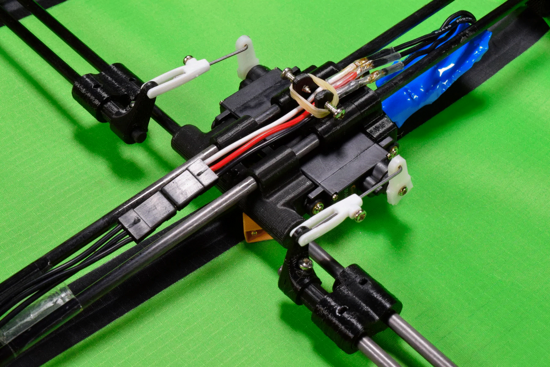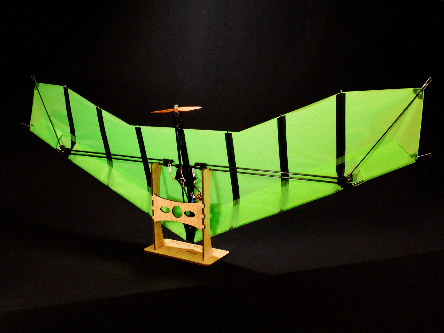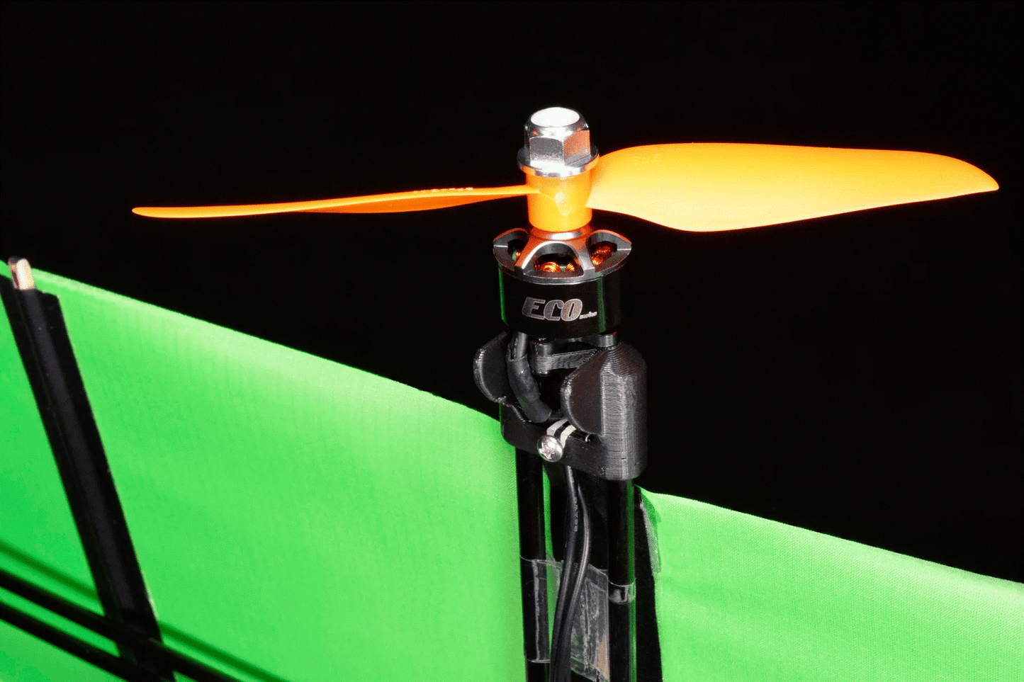 Unlike a conventional aircraft, the Carbon Falcon has no control surfaces. High torque servos drive torque tubes that warp the trailing edge for the maneuverability of a bird, making it look almost alive in flight.
