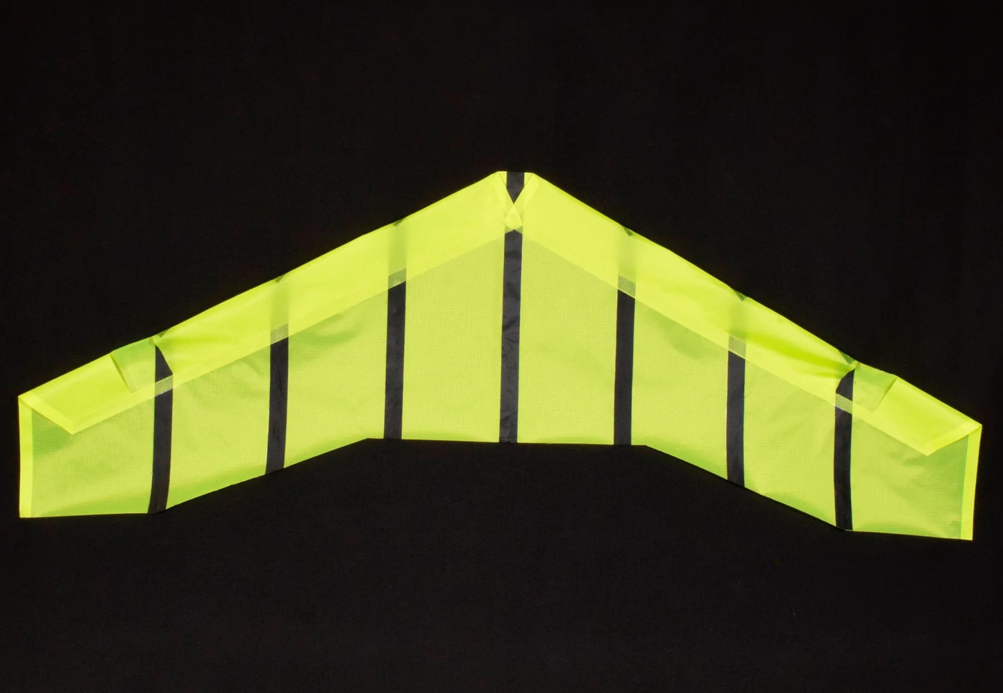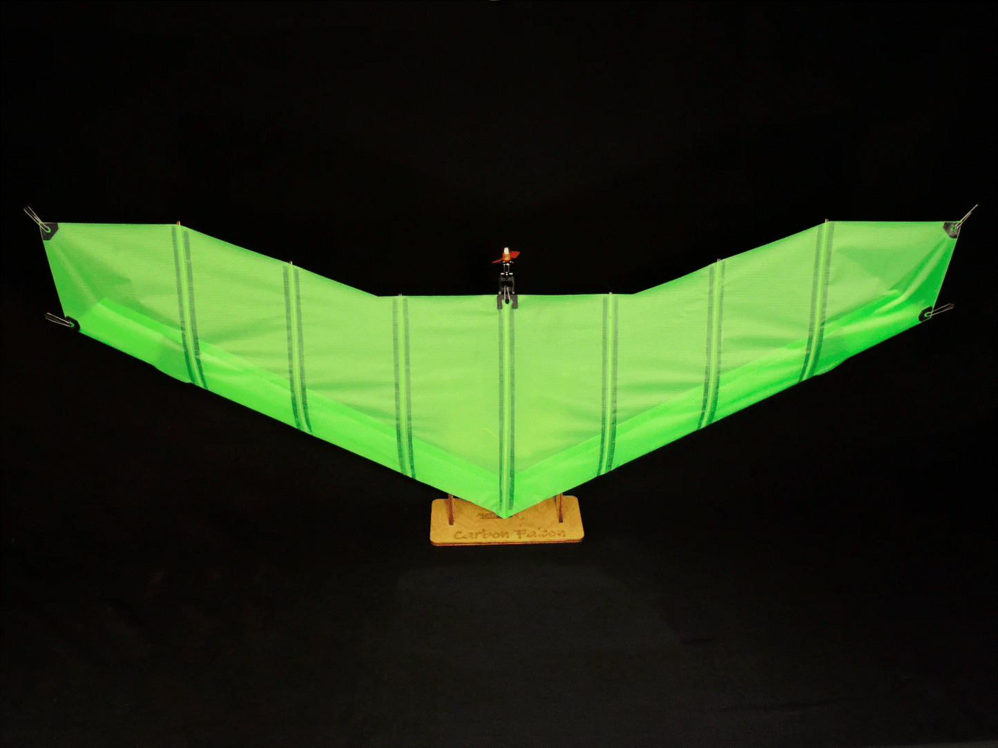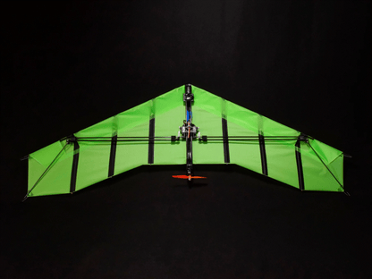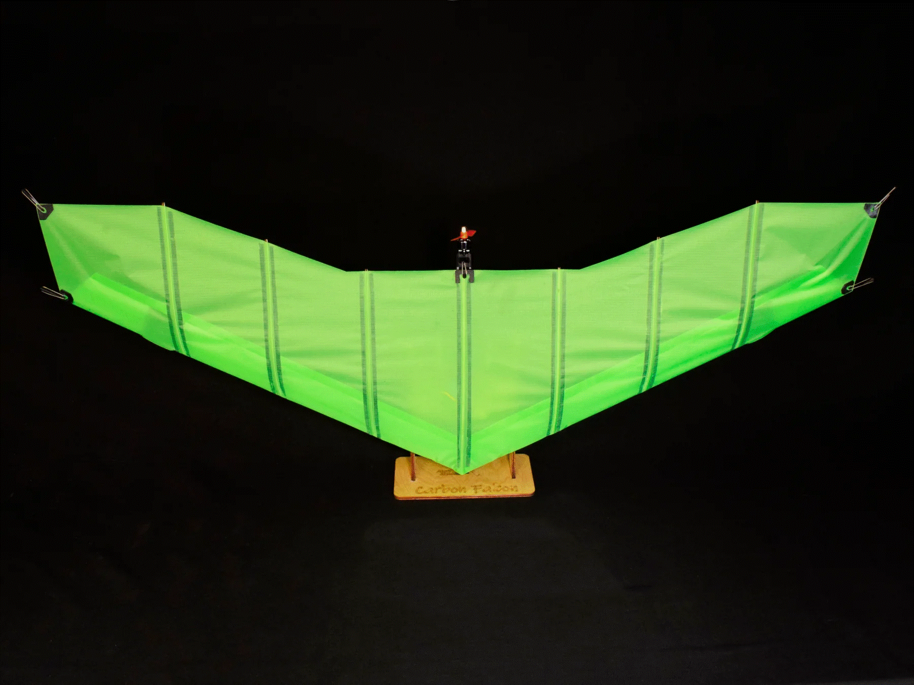The lightweight and robust frame is mostly made from carbon fiber, that supports a colorful, high strength rip-stop fabric sail. The airfoil shape is provided by specially designed ply battens that don't lose their shape. The fabric we utilize is an advanced material designed in the USA for full scale sail boat spinnakers. The fabric and the frame design combines to make a VERY durable aircraft.