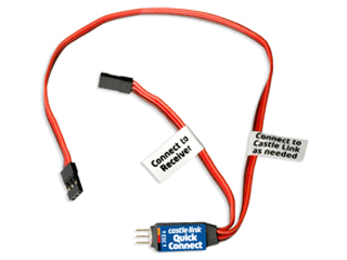 Experienced modelers go to great pains to tie down their servo and throttle leads, and some find unplugging a Castle controller from the RX disrupts all their work. Many have asked for something like a Y connector that gives an open lead for easy Castle linking, but a traditional Y harness doesn't work when the other branch of the Y is connected to an RX, the signal line must be disconnected from the RX.