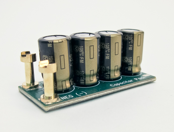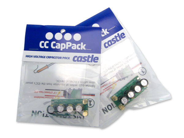 - Aircraft: Larger electric power systems lead to larger electric powered aircraft, and sometimes the distance between the battery pack and the ESC grows beyond the length of the wires installed on the components. Adding wire also adds inductance, which can increase the ripple voltage in a system. CC CapPack essentially negates the ripple caused by the addition of up to 8 inches of length to the battery wires.