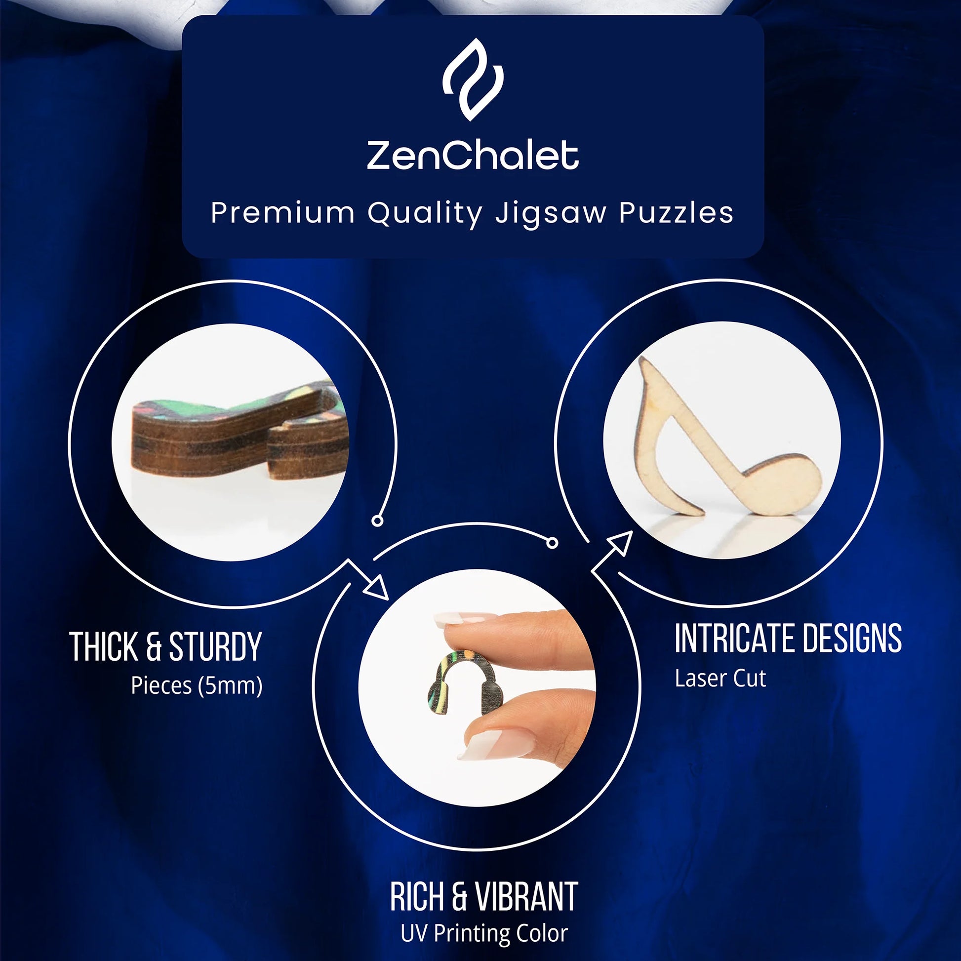 High-Definition Printed Quality: Utilizing the latest advanced UV printing techniques with non-fading colors to capture the smallest of details, this hard puzzle is as vibrant and color-sharp as wood puzzles get. Closely reflecting the beauty of intertwining shapes in rich colors, each wood puzzle piece of this music puzzle boasts crisp print quality to satisfy all music-loving puzzlers.