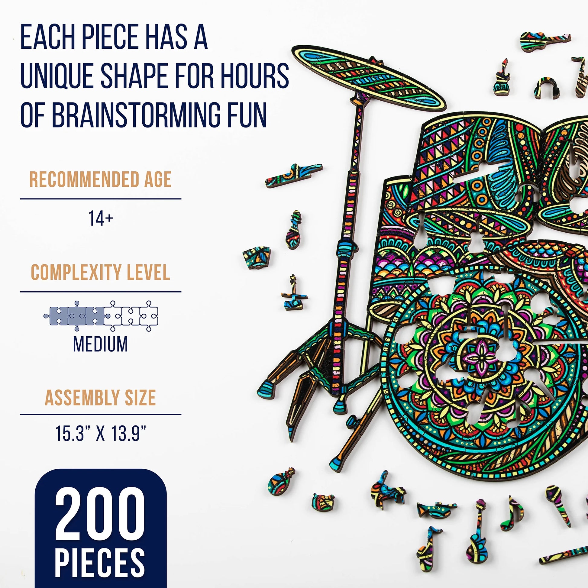 Colorful Drum Set Wooden Puzzle, 200 Pcs