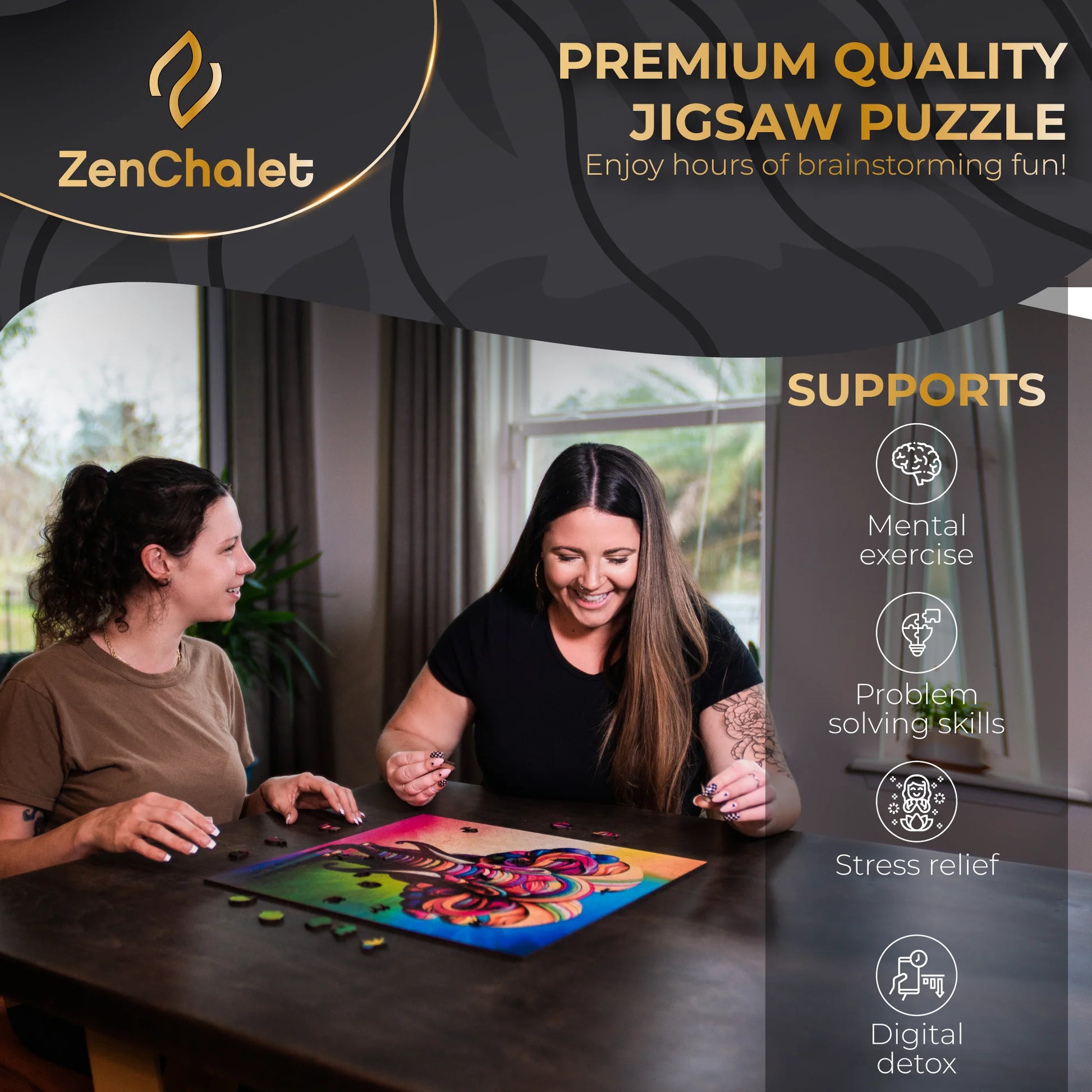 Precision-Cut Pieces: A home decoration in the making, our puzzle comes with precision-cut interlocking wooden pieces that snap tightly into place. Easy to lift without falling apart to display as wooden art, adding colors and texture to any home decor. This unusually-shaped puzzle pairs as a nature-themed and mystical piece of art, to add color and beauty to any home decor, and to frame and securely display for all to admire.