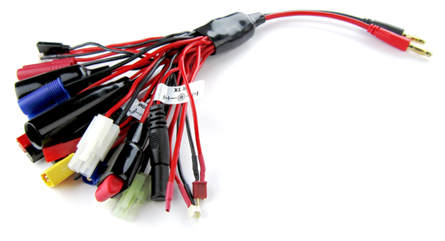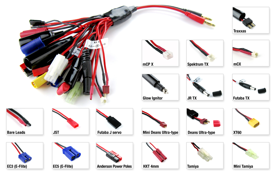 Our biggest and baddest charging adapter yet! Features all of the most popular charging connectors (Deans, Traxxas, and EC3) as well as new XT60, EC5, and HXT 4mm connectors and a dozen others!