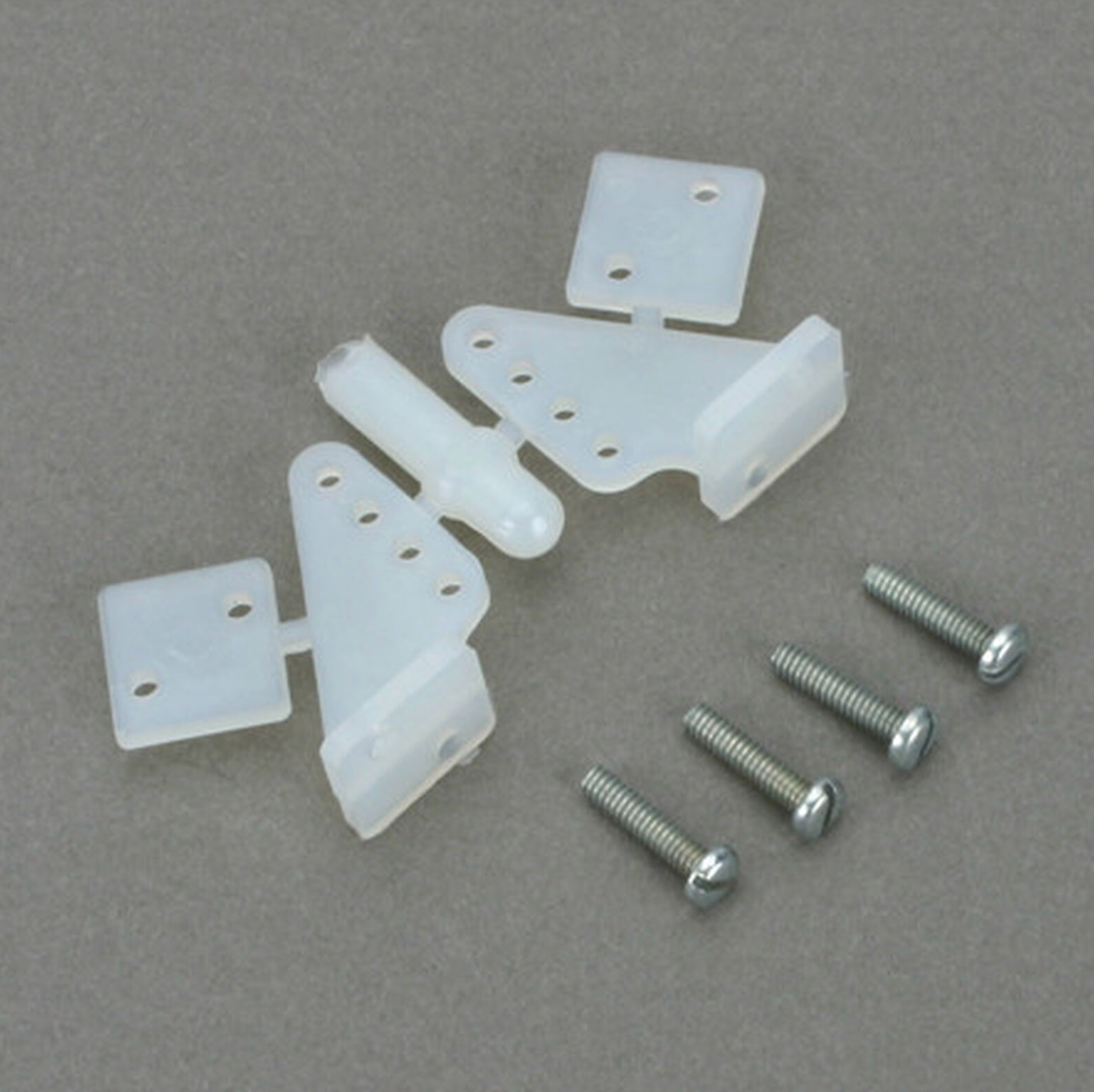 Nylon 3/4 long with 4 adjustment positions. Includes 2 control horns centered on base, 2 self threading nut plates and (4) 2-56 x 3/8 screws.