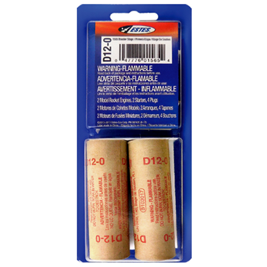 The Estes D12-0 engine is a booster stage engine designed for model rocket flight and has to be used with a standard engine. This engine is for flights in rockets weighing less than 14 ounces, including the engines.
