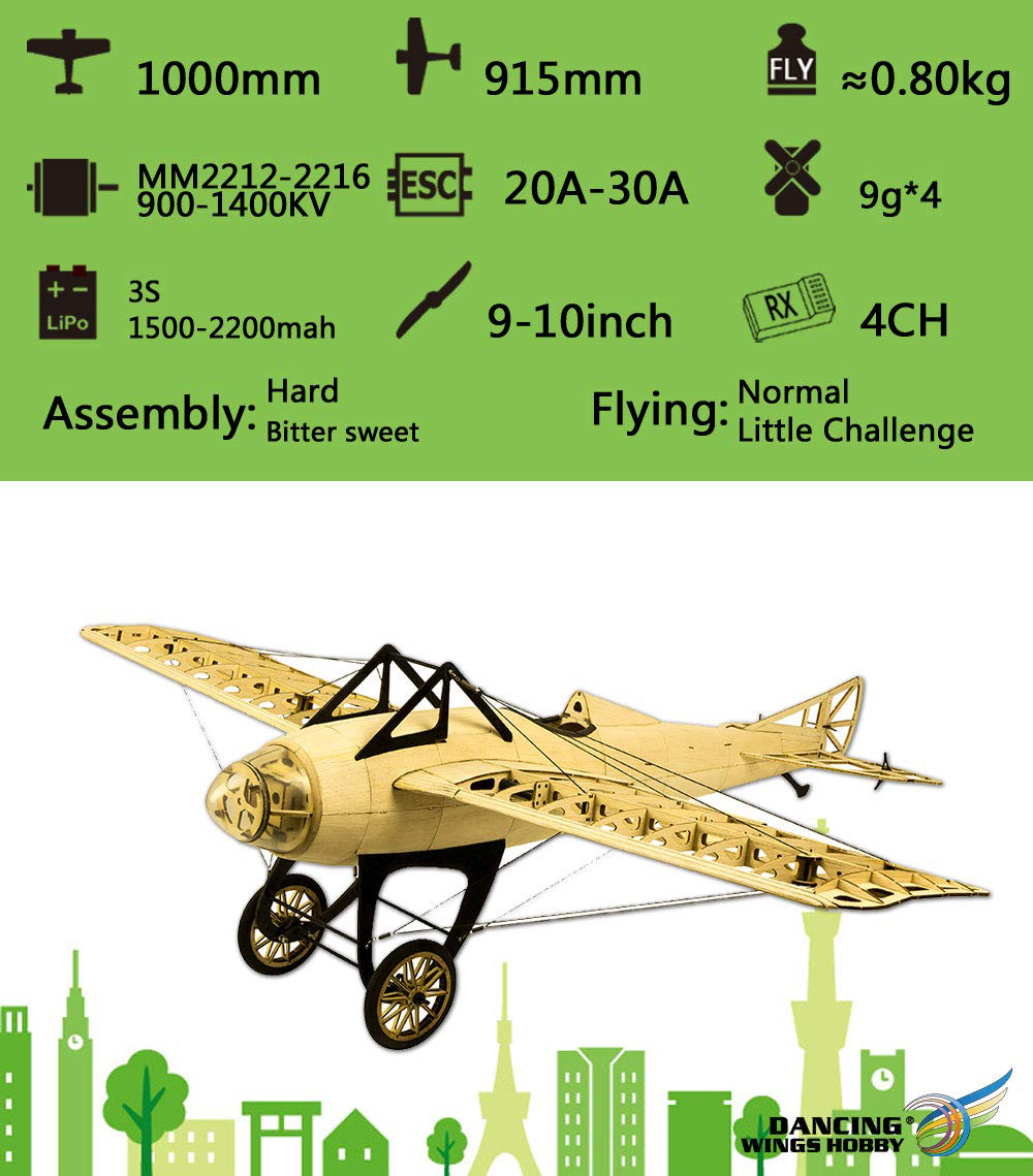 Deperdussin Monocoque 1.0M Kit, Free Motor, ESC, Servos
