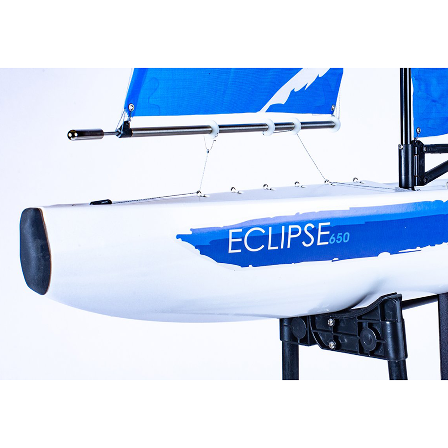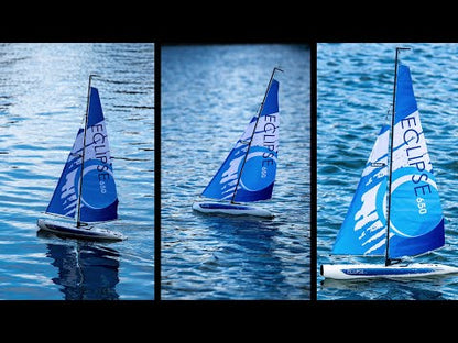 The Eclipse 650 is a RTR boat, so everything you need to get started is included in the box - including a 2.4GHz interference-free radio system, a "drum style" sail winch servo, and pre-printed rip-stop nylon sails that provide durability and performance. The Eclipse 650 even includes the 8 AA batteries needed for operation - 4 for the transmitter and 4 to power the servos, plus an easy to assemble display stand to show off your new sailboat when you not out sailing. After a few minutes of final assembly, it won't be long before you're waiting for a breeze to sail your new Eclipse 650 across your local pond or lake!