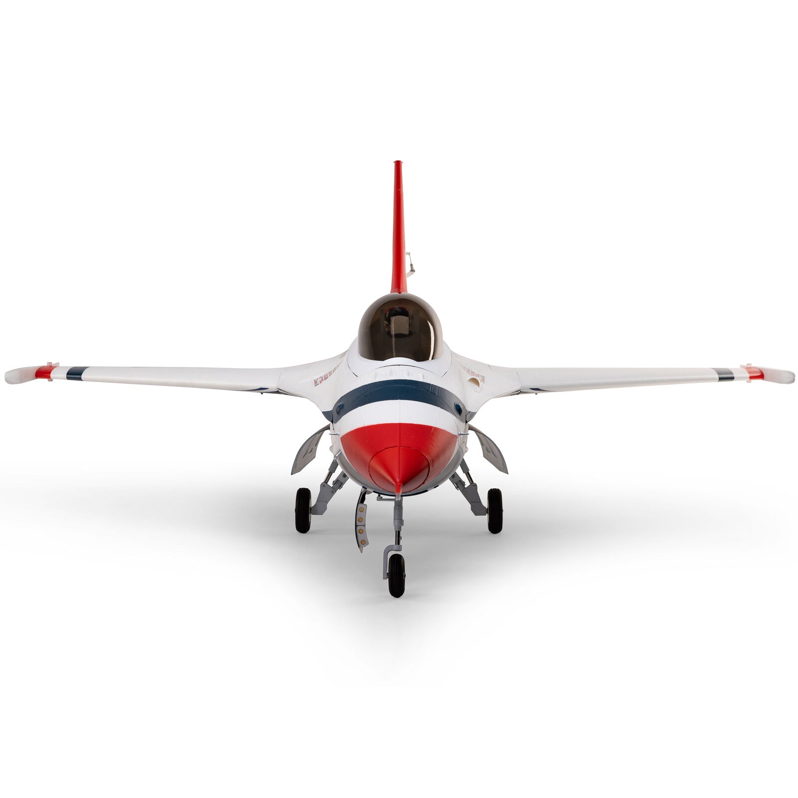 The fully-painted white plus red and blue finish replicates the iconic Thunderbirds scheme in stunning fashion, while Extra Scale details and functional features — including the most scale-like landing gear installed on an F-16 EDF model yet — combine to deliver an unmatched flying experience!