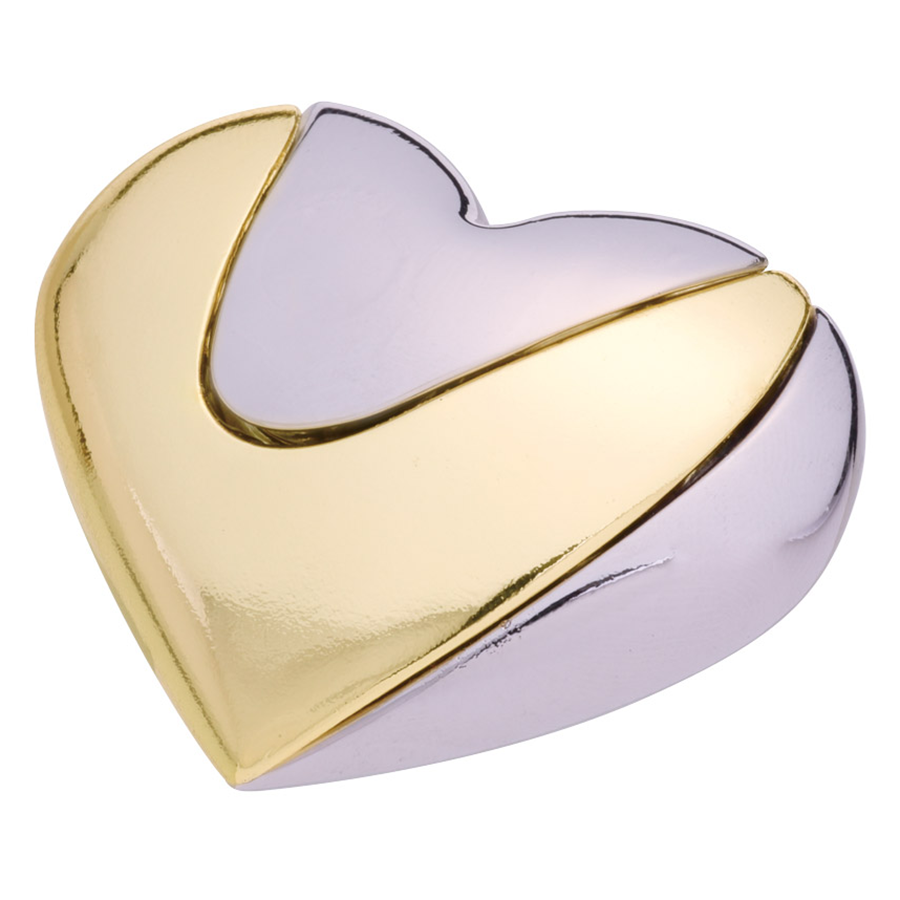 Two pieces that smoothly intertwine to make a single form. Manipulate the two individual pieces to create a beautiful heart.