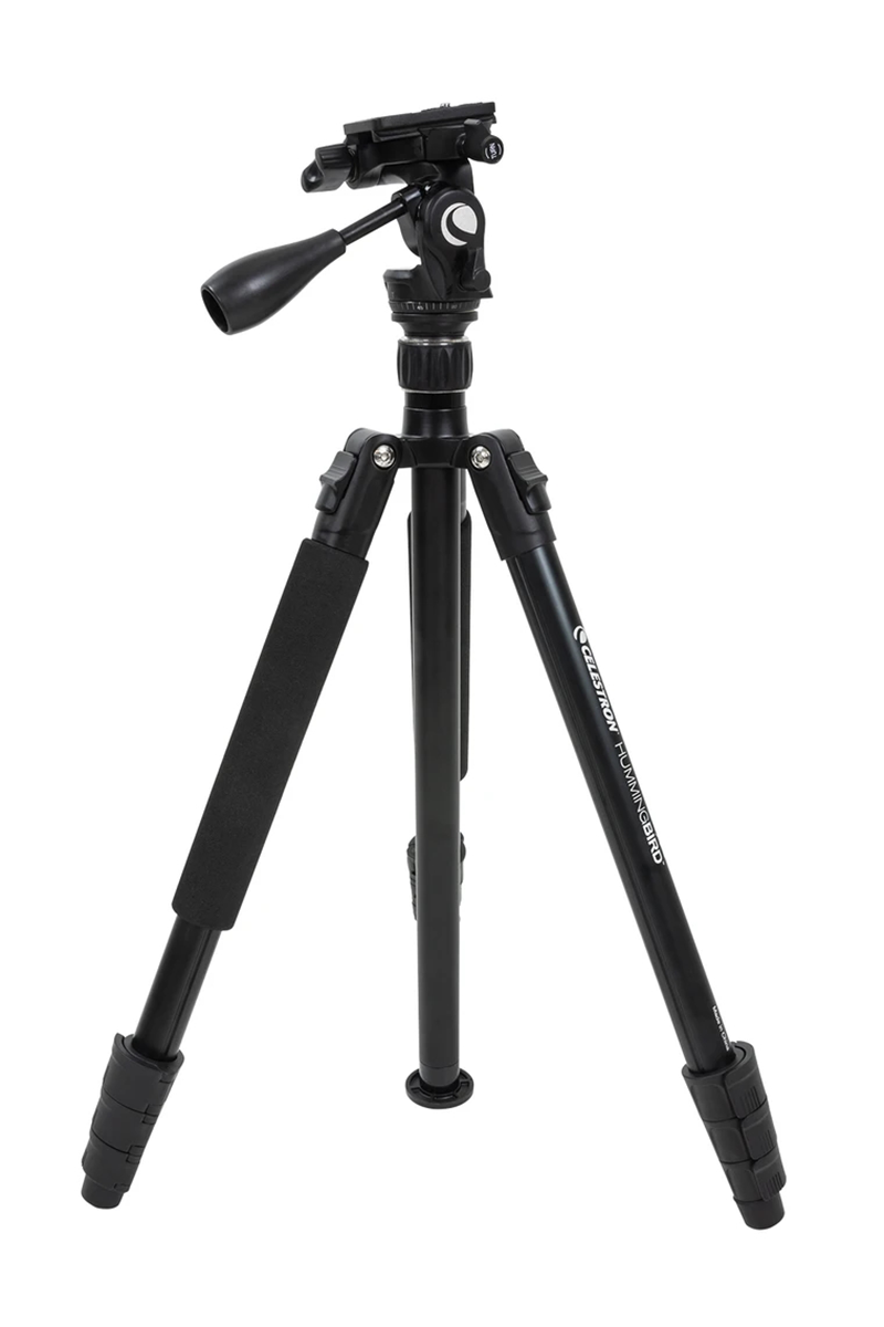 The Hummingbird tripod is an excellent choice for those seeking a lightweight yet stable platform for a spotting scope, binocular or camera. With four leg sections, three leg angles and an adjustable center column, the tripod can be set in multiple configurations to get the exact height or stance needed for your terrain and conditions. Use the panning handle and tension knob to scan across the horizon in smooth motions and follow your subject as it moves. The Hummingbird is the perfect tripod for any outdoor excursion from bird watching to stargazing and everything in between.