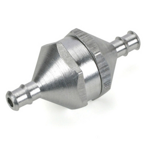 This is the Large Scale model. Constructed of two threaded aluminum parts which separate for ease in cleaning. Works for both gas and glo fuels. 130 micron mesh screen filter to filter out the smallest of particles and an o-ring to properly seal against leakage.