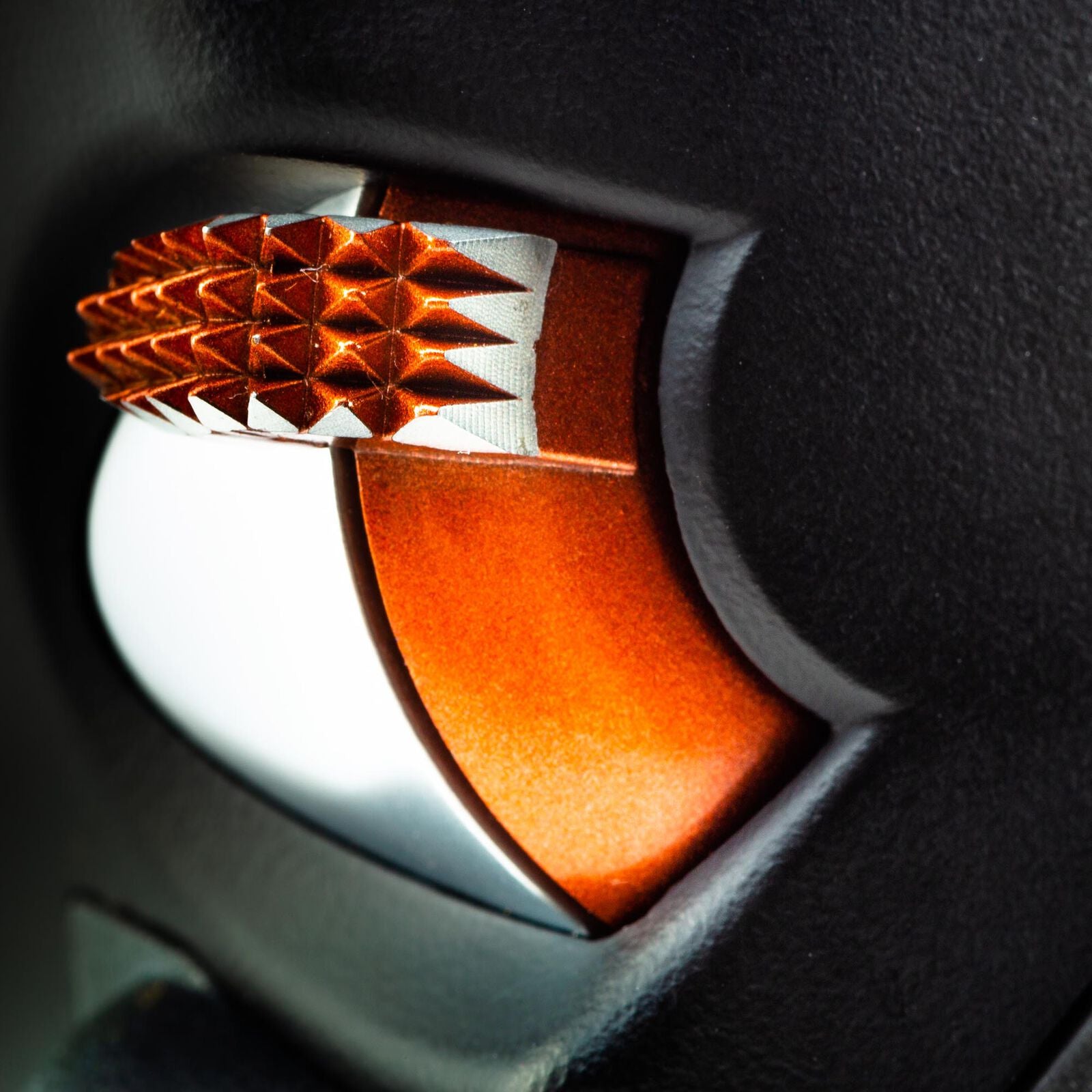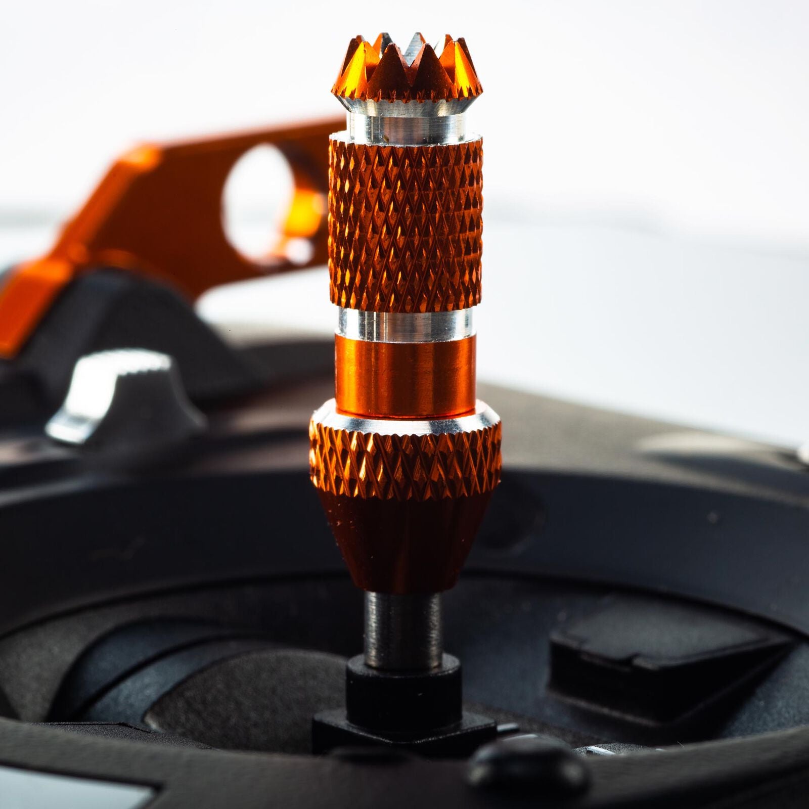 - Easy-grip slide levers with firm-center detent plus spring tension adjustment accessible from the front of the transmitter