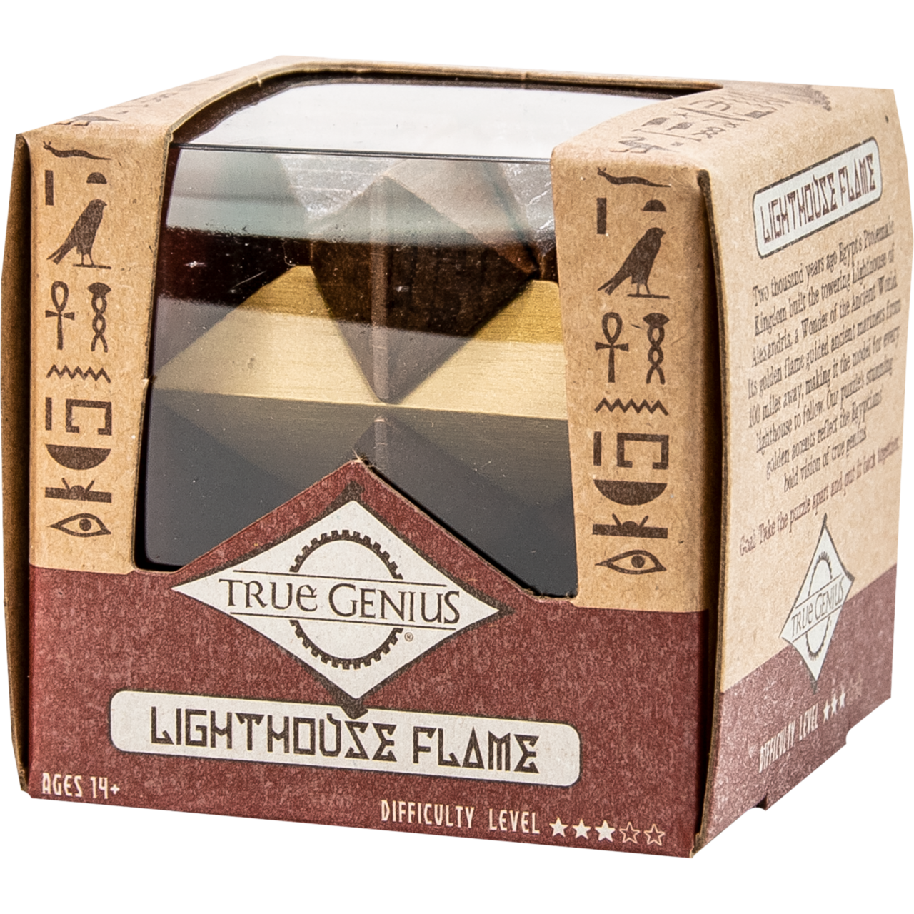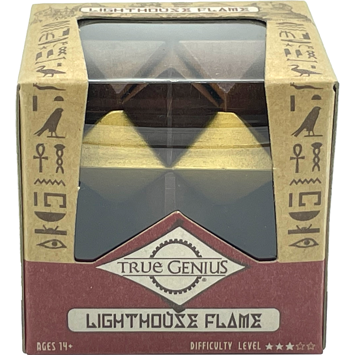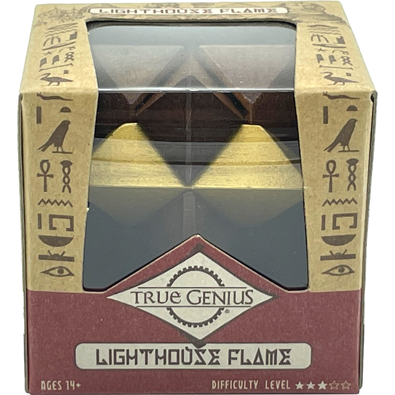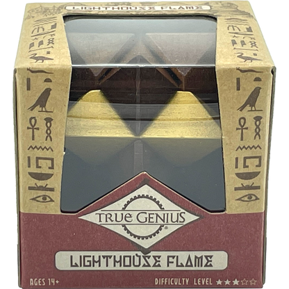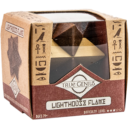 Light your way to the secrets within. The 6 identical pieces of the Lighthouse Flame come apart easily enough but do you have the True Genius and dexterity to fit them back together again?
