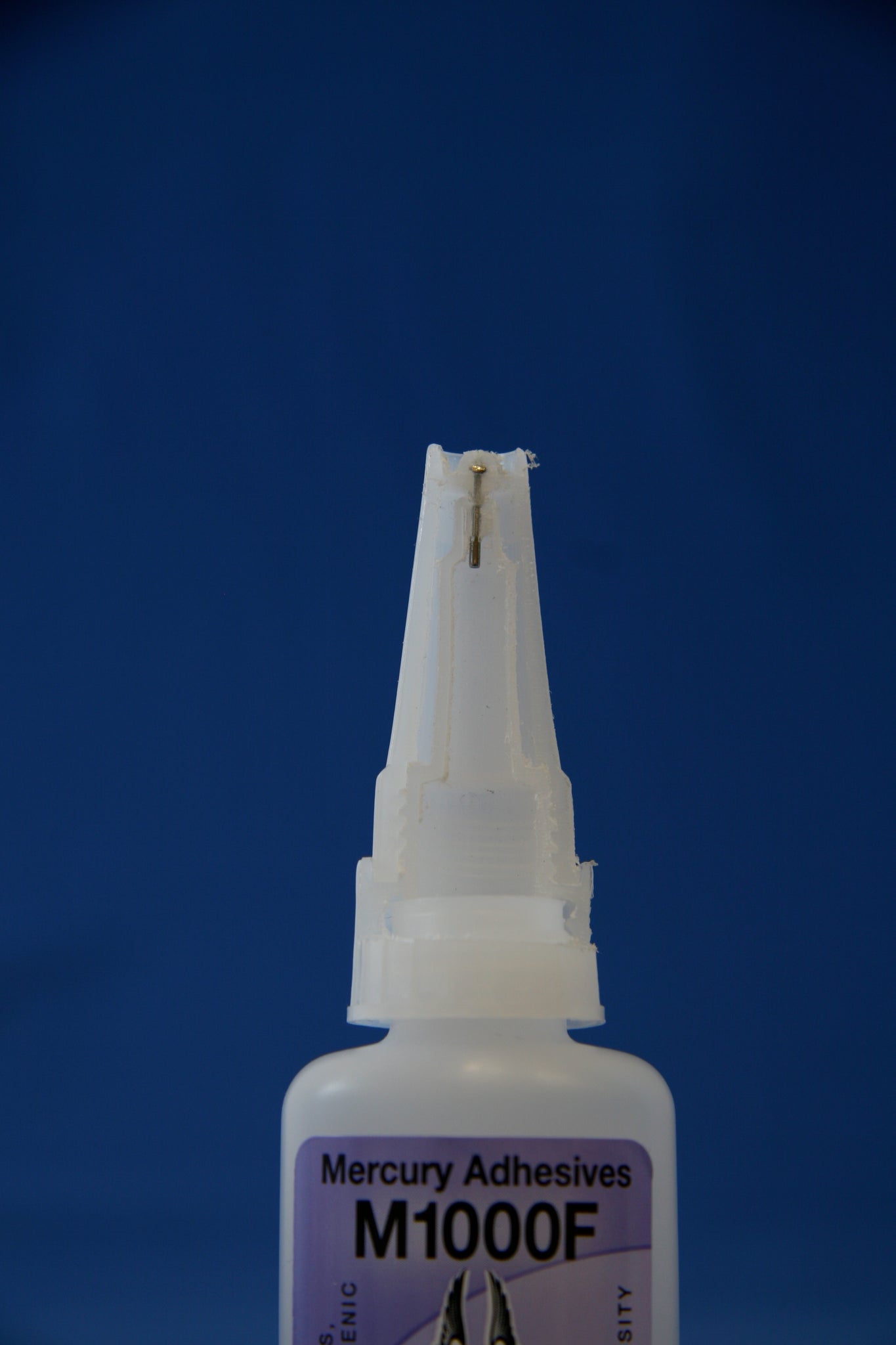 The bottle top Mercury has designed is clever and actually screws on and off instead of the usual push on and pull off. This assures a smooth operation and a good tight seal keeping the adhesive fresh, and helping prevent spills. The Mercury bottle cap is also scientifically engineered in such a way to help prevent clogging.