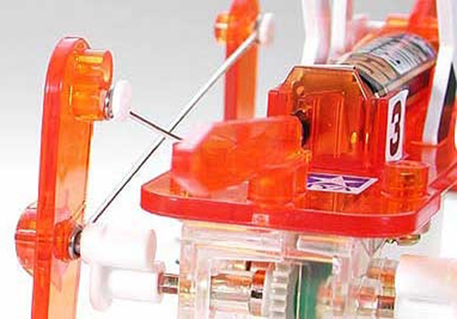 Power from the rotating motor is transferred to the legs via link rods to make the horse gallop. Two link rod holes on the back legs allow you to choose between two running styles.